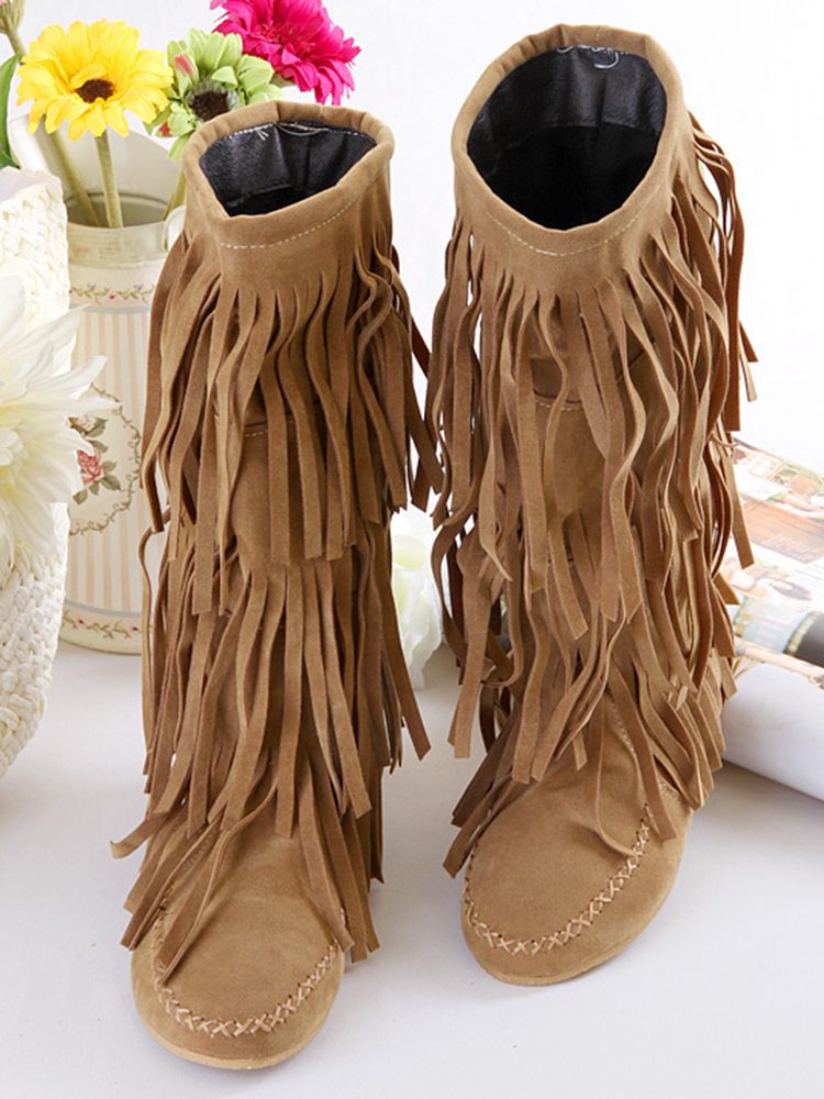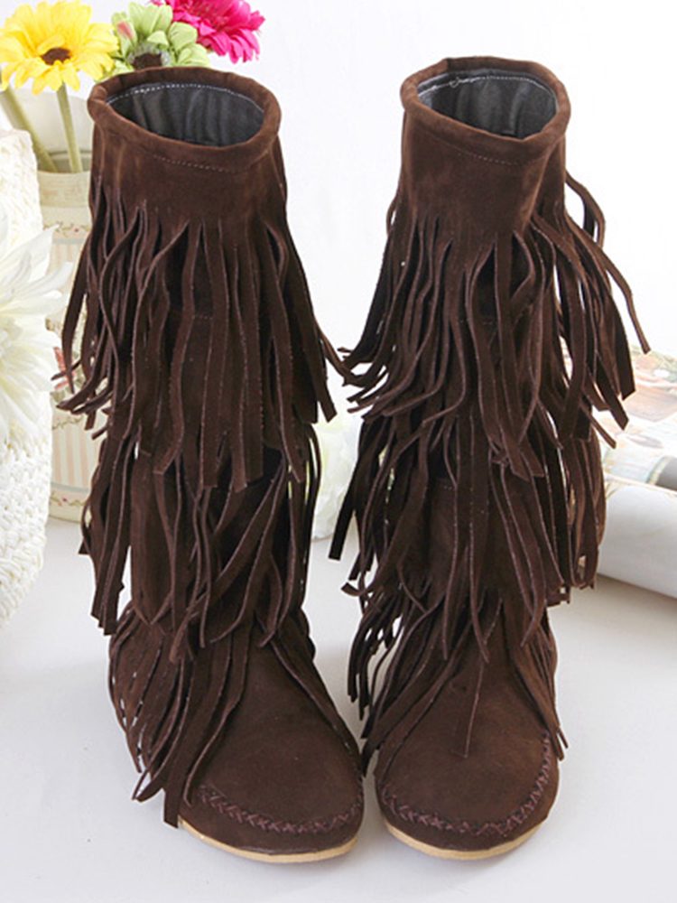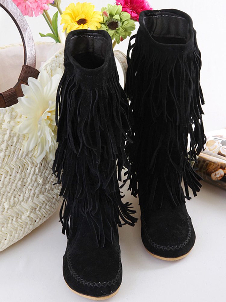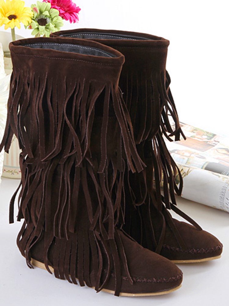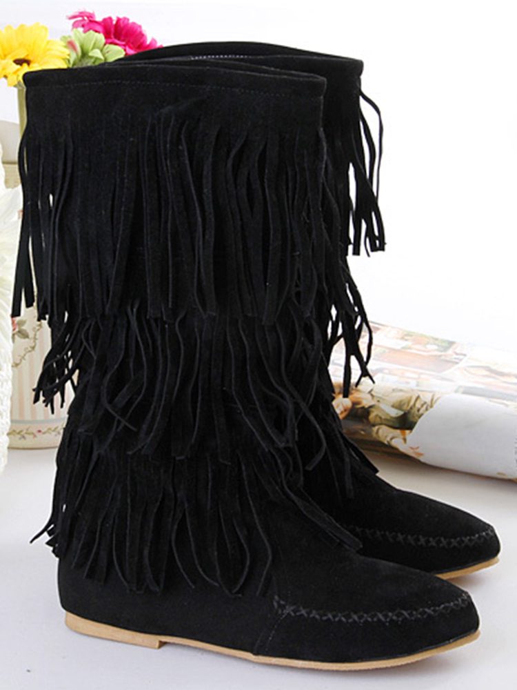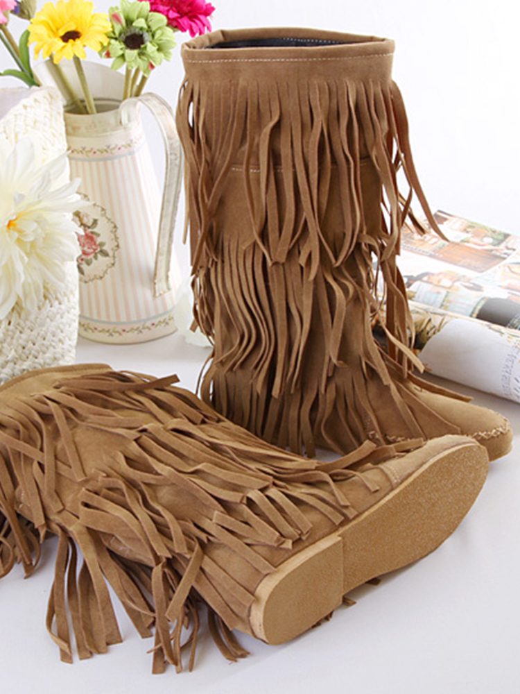 Western Nubuck Suede Tassel Booties