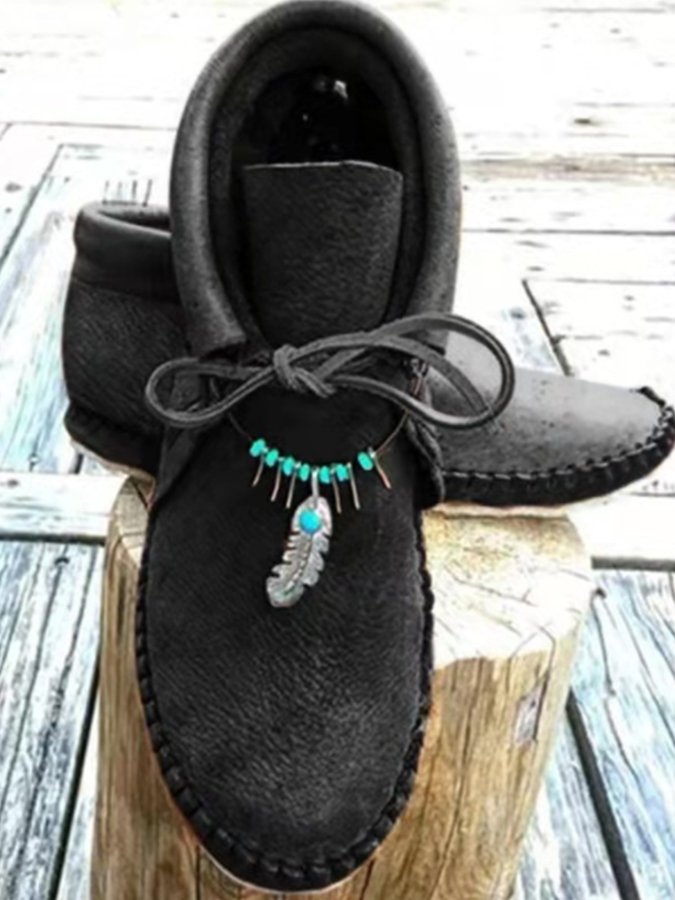 Women's Western Vintage Embroidered Studded Chunky Heel Plus Size Boots