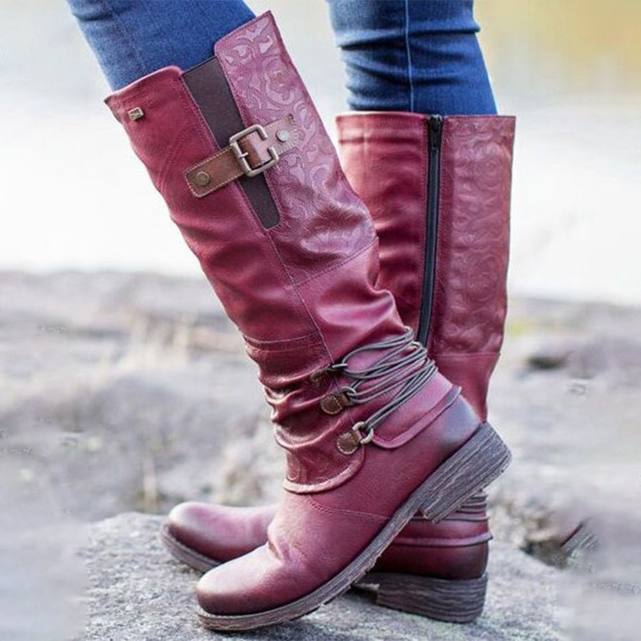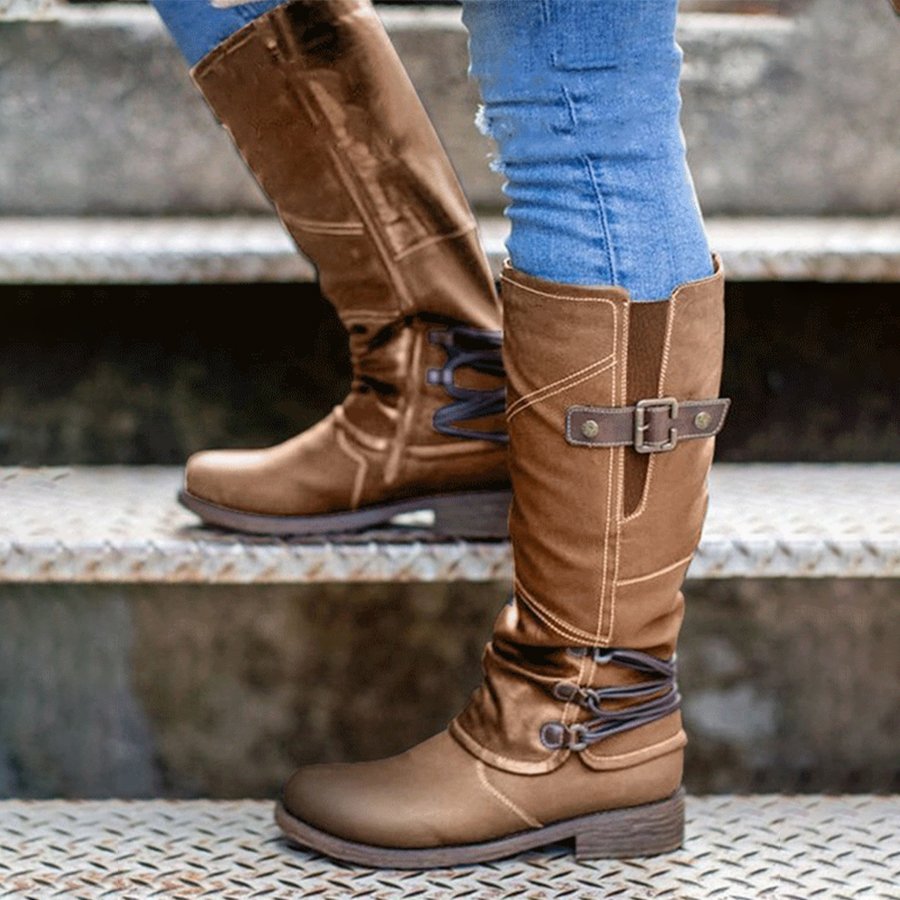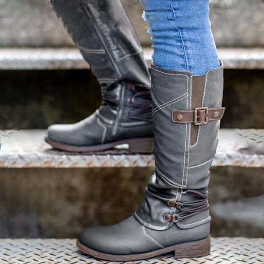 Retro Stitching Lace-Up Zipper Ankle Boots